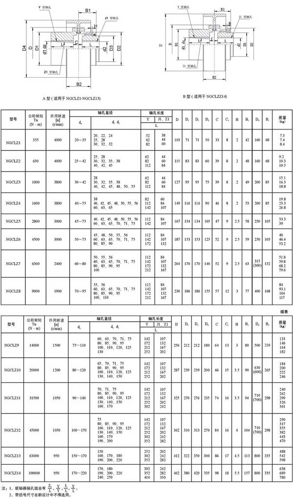 NGCLZ型帶制動(dòng)輪鼓形齒式聯(lián)軸器 基本參數(shù)和主要尺寸
