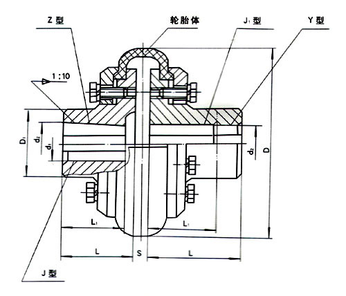 LLA輪胎式聯軸器(JB/T10541-2005)原標準(JB/ZQ4018-85)autocad圖